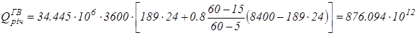 де yГВЛ -коефіцієнт зменшення витрат води на гаряче водопостачання в літній період; nГВ -тривалість роботи гарячого водопостачання, год/рік. Для розрахунку, з [3] приймаємо, що nГВ =8400 год/рік, y ГВЛ =0.8. За формулою (2.4)