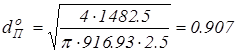 де r – густина теплоносія відповідно в прямому і зворотньому трубопроводі, кг/м3 (rп =916.93 кг/м3 для температури води в прямому трубопроводі 150о С, rз =977.81 кг/м3 для температури води 70о С); с – швидкість руху теплоносія, м/с (для прямого теплопроводу с=2.5 м/с, для зворотнього – с=1.5 м/с). За формулою (5.7)