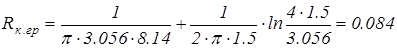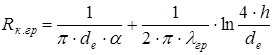 де a – коефіцієнт тепловіддачі від повітря до внутрішньої поверхні каналу, Вт/(м2 ×К) (a= 8.14 Вт/(м2 ×К) [8]); lгр – коефіцієнт теплопровідності грунту, Вт/(м×К) (lгр =1.5 Вт/(м×К) [8]); h – глибина закладення осі теплопроводу , м (h=1.5 м). За формулою (5.9)