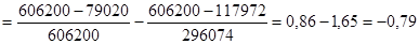 Данные расчёты для матрицы финансовой стратегии за 2008 и 2009 гг. 1. Вр – выручка Вр2008 = 606200 Вр2009 = 296074 2. ДС – денежные средства ДС2008 = 606200 – 125145=481055 ДС2009 = 296074 – 75951 = 220123 3. БРЭИ – брутто результат эксплуатации инвестиции. БРЭИ2008 = 481055 – 57113,3= 423941,7 БРЭИ2009 = 220123 – 70145,5 = 149977,5 4. НРЭИ – нетто результат эксплуатации инвестиции. НРЭИ2008 = 423941,7 – 126418,9= 297522,8 НРЭИ2009 = 149977,5 – 67002,32 = 82975,2 5.РХД = БРЭИ – ∆ФЭП – ДФВ + Вр (32) РХД – результат хозяйственной деятельности; ∆ФЭП – изменение финансовой эксплуатации потребностей; ДФВ – долгосрочные финансовые вложения. ТА2008 = 24691 + 22403 + 149354 = 196448 ТА 2009 = 16358 + 131571+ 598049 = 745978 ТО2008 = 18922 + 29232 = 48224 ТО2009 = 77891 + 34513= 112404 ∆ФЭП2008 = 196448 – 48224 = 148224 ∆ФЭП2009 = 745978 – 112404 = 633574 РХД2009 = 82975,2 – 633574 – 39259 + 79020 = 510837,8 РХД2008 = 297522,8 – 148224 – 61728 + 117972 = 205442,8 6.РФД = ∆ КЗС – ФИ – НрП – ∑Д + (Дфд – Рфд) (33) РФД 2008 = 58899 + 17950 = 76849 РФД2009 = 58899 + 12333 – 24000 + 657803 = 680369 7. РФХД 2008 = 205442,8 + 76849 = 282291,8 РФХД 2009 = -510837,8 + 680369 = 169531,2 Табл. 16. Расчётные данные для матрицы финансовых стратеги