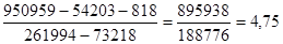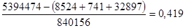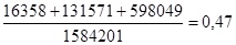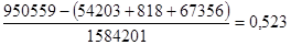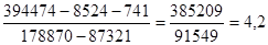 = ЧТА2009 = (598049 + 131571 + 16358) – (77891 + 34513) = 633574 К1(2009)