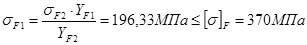 где KV = 1, – скоростной коэффициент (см. выше), m и dW 1 – в м; YF – коэффициент формы зуба, который принимают в зависимости от