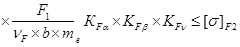 = 1 − коэффициент, учитывающий наклон зуба. 6) []F 1 и []F 2 − допускаемые напряжения изгиба шестерни и колеса.