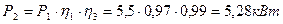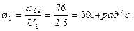 (2.1) где η – общий КПД редуктора [1,с.89]. где η1 = 0,97 – К.П.Д. ременной передачи; η2 = 0,99 – К.П.Д. пары подшипников; η3 = 0,96 – К.П.Д. редуктора; Ртр =4,5/0,913=4,93 кВт. Из табл. [1,с.93] выбираем электродвигатель (по требуемой мощности) типа А02-52-8 имеющий мощность Р1 =5,5 кВт при частоте вращения n=730 об/мин и угловой скорости ω=76 рад/с .Угловая скорость ведущего вала привода Число оборотов ведущего вала привода Общее передаточное число [1,с.90] В соответствии с ГОСТ 2185-86, U=8,69 [1,c.97]. При этом передаточное число ременной передачи U1 =2,4, редуктора U2 =3,62 [1,с.97] Частота вращения ведущего вала редуктора Угловая скорость каждого из валов Мощность каждого из валов