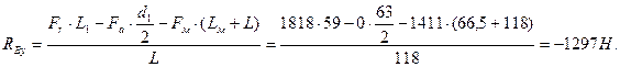 L м =66,5мм, Fм =1411Н. Вертикальная плоскость: ∑M3 =0;