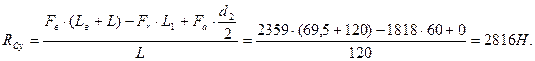 8.3.1 Определяем реакции в подшипниках Дано: Ft =4994H, Fr =1818H, Fa =0H, L =120мм, L 1 =60мм, d 2 =126мм, L в =69,5мм, F в =2359Н. Вертикальная плоскость: ∑M4 =0; (8.15) ∑M2 =0;