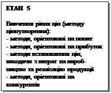 Таким чином, практична цінність показників еластичності полягає в наступному: · на основі оцінки еластичності можна визначити, в якому напрямі слід впливати на ціни, щоб збільшити виручку; · зіставлення еластичності для конкуруючих марок дає змогу визначити ті з них, які є менш чутливими до підвищення ціни, тобто мають більшу ринкову силу; · порівняння еластичності для товарів, що створюють єдину гаму, діє змогу узгодити ціни в межах цієї гами; · перехресні еластичності дають змогу спрогнозувати зміни попиту з однієї марки на іншу, тощо. Етап3. Попит визначає верхній рівень ціни, а її мінімальну величину – витрати. Всі витрати підприємства (загальні витрати) поділяються на операційні та інвестиційні. Операційні витрати - це витрати операційної діяльності підприємства, тобто його основної діяльності, пов'язаної з виробництвом та реалізацією продукції (товарів, робіт, послуг), яка забезпечує основну частку його доходу. Операційна діяльність не включає інвестиційної та фінансової діяльності підприємства. Операційні витрати ще називають поточними витратами. Частина з них є циклічними і повторюваними (витрати за сировину і матеріали, заробітну плату та ін.), а інші мають місце постійно і незалежно від виробництва (витрати на утримання приміщень, управлінського персоналу, споруд тощо). Витрати виробництва представляють у натуральній і вартісній формах. Розрахунок необхідної кількості і облік витрат у натуральній формі має важливе значення для організації самого процесу виробництва на підприємстві. Вартісна форма оцінювання витрат є вирішальною в процесі визначення ефективності виробничої діяльності підприємства, вона відображається у вартості виготовленої продукції, виконаних робіт (послуг). Вартісною формою витрат на підготовку виробництва, виготовлення продукції та її збут є собівартість продукції. Собівартість комплексно характеризує використання всіх видів ресурсів підприємства, вона є одним з важливіших показників ефективності виробництва. Собівартість продукції включає витрати на: - вивчення ринку, виявлення величини попиту на продукцію; - підготовку та освоєння виробництва нової продукції; - сам процес виробництва продукції; - обслуговування виробничого процесу та управління ним; - збут продукції; - дослідження, використання та охорону природних ресурсів; - набір і підготовку кадрів; - вдосконалення процесу виробництва, підвищення його ефективності. Для підприємства важливо визначити витрати, які відшкодовуються за рахунок собівартості, а які - за рахунок прибутку. На практиці не завжди собівартість продукції є повним відображенням дійсних витрат на її виробництво: одні з них мають відношення до процесу виробництва продукції, але відшкодовуються за рахунок прибутку; інші - включаються в собівартість, але не мають прямого зв'язку з виробництвом. В основу класифікації витрат, що формують собівартість продукції, покладено такі ознаки: І. Ступінь однорідності витрат. Всі витрати за цією ознакою поділяються на: • одноелементні (прості) — сировина і матеріали, заробітна плата тощо; ці витрати мають єдиний економічний зміст; • комплексні - різнорідні за своїм складом і охоплюють декілька елементів витрат, їх ще називають непрямими (загальновиробничі та адміністративні витрати, втрати від браку). II. Спосіб відне