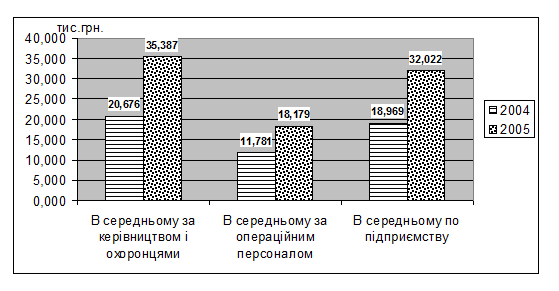 В середньому по підприємству заробітна плата в 2005 р. склала 32022 грн. на рік, що в 1,68 разів більше ніж у 2004 р. (рис.2.5)