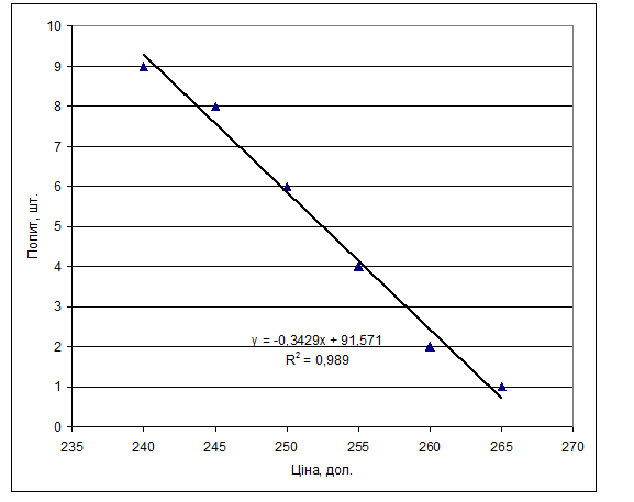 Згідно отриманого тренду, зниження ціни на 10 дол. відповідає збільшенню частки ринку на 8,1%. Враховуючи, що поточна відносна частка ТОВ «Едемо» на ринку даної послуги складає 8%, зниження ціни з 245 грн. до 235 грн. приводить до зростання цієї частки в 2 рази.