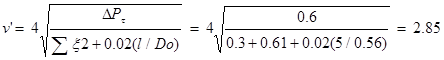 За довідниковими таблицями[3] даній величині Do відповідає дефлектор Т30 з Do = 600 мм. Визначимо рух повітря в шахті при відсутності вітру, враховуючи наступні додаткові дані: висота шахти l = 5 м, коефіцієнт локального опору зонта Σξ1 = 0,3, коефіцієнт опору руху повітря для круглого дефлектора при повному напорі 0,61. Тоді швидкість повітря в горловині дефлектора: