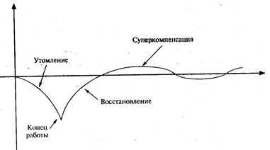 Принципиальная схема восстановления энергетического потенциала функциональной системы после выполнения работы Как видно из представленного рисунка, на определенном этапе восстановления энергетики и работоспособности их величина оказывается выше исходного значения, что определяется как суперкомпенсация. Объясняется это явление следующим образом. Двигаясь, организм и восполняет израсходованное. Он старается не просто «добрать» недостающее, вернуться к исходному состоянию, а обязательно накопить больше, чем истратил. Это – процесс индукции избыточного анаболизма, то, что в экономике называют «расширенное воспроизводство». Отсюда становится понятно, что максимальный объем повторной работы, выполненной в периоде сверхвосстановления, может быть выше, чем предыдущий, а суперкомпенсация после повторной работы оказывается на еще более высоком уровне, выше первой – в этом, собственно, и заключается эффект тренировки системы. Суперкомпенсация протекает в две фазы: 1 – избыточное накопление массы, что и обусловливает рост и накопление внутренней энергии, причем этот эффект касается не только мышечной системы, но и нервной, и железистой, и других; 2 – избыточное накопление структурно-энергетических потенциалов (структурной энергии), увеличивающих не массу, а свободную энергию. Определенный объем постоянной двигательной деятельности как реакции на стресс создает энергию адаптации, без достаточного уровня которой человек не может реализовать в жизни заложенную в него природой генетическую программу, не может дожить до естественной старости и не может быть здоровым. Не зря поэтому рожденный незрелым плод без необходимого объема двигательной активности не может пройти все фазы формирования (созревания), а взрослый не может накапливать структурную энергию, необходимую для обеспечения нормальной жизнедеятельности. Непосредственно во время мышечной деятельности в скелетной мускулатуре и в тканях, обеспечивающих двигательную активность систем (в том числе и нервной), возникают структурные изменения (в частности – распад белка). После же нагрузки поступивший с пищей пластический материал не только восполняет разрушенную структуру, но и через измененный тканевый обмен создает предпосылки для дальнейшего развития. Здесь двигательная активность выступает как регулятор, увязывающей генетическую программу с условиями существования в каждый данный момент. Понятно поэтому, что пища не сама по себе обеспечивает рост и развитие, а лишь в случае возникновения в результате движения в работающей ткани «ниши», в которую она может встроиться *. Вот почему, как было показано в экспериментах И.А. Аршавского, мало двигающиеся щенки, получающие от матери достаточное количество молока, тем не менее в месячном возрасте весят, как 4–5-дневные. * Именно поэтому используемые, в частности, в спорте для наращивания мышечной массы анаболические стероиды дают эффект только в мышцах, выполняющих в течение тренировочных нагрузок наиболее значительную работу, но не сказываются на мышцах, не специфичных для специализации спортсмена. Анализ приведенного выше рисунка заставляет обратить внимание на некоторые обстоятельства, которые следует учитывать при организации используемых в оздоровлении нагрузок – мышечных, температурных, иммунных и