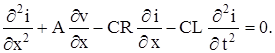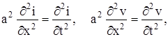 Уравнения (5) и (6)принято называть телеграфными уравнениями. Из системы уравнений (5) и (6) можно получить уравнение, содержащее только искомую функцию i (x, t), и уравнение, содержащее только искомую функцию v (x, t). Продифференцируем члены уравнения (6) по x; члены уравнения (5) продифференцируем по t и умножим их на С. Произведя вычитание, получим:
