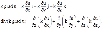 где k – коэффициент теплопроводности рассматриваемой среды, которую мы считаем однородной и изотропной, n – единичный вектор, направленный по нормали к площадке