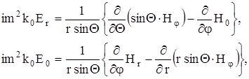 . Подставляя эти выражения в (27) и (28), получаем однозначное решение уравнений для потенциалов, удовлетворяющее всем граничным условиям. Из потенциалов, в соответствии с (14), можно получить выражения для составляющих внутреннего и дифрагированного полей. Так как в дальнейшем нас будет интересовать дифрагированное поле, то выпишем только его составляющие, восстановив опущенный ранее множитель Е0