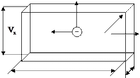 a – длинна полупроводника, l – высота полупроводника, d – ширина полупроводника. При включении электрического поля в полупроводнике протекает ток. Под действием электрического поля носители заряда получают скорость направленного движения (дрейфовую скорость) против поля для электронов и по полю для дырок. При включении магнитного поля на электроны и дырки действует сила Лоренца, перпендикулярная векторам скорости и магнитной индукции. Из уравнения движения носителей заряда следует, что за время между двумя соударениями электроны и дырки приобретают скорость Подставив это соотношение в формулу