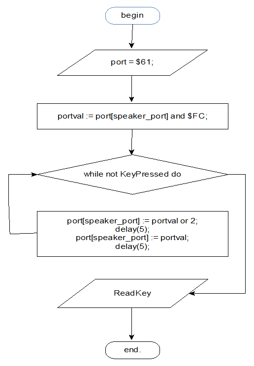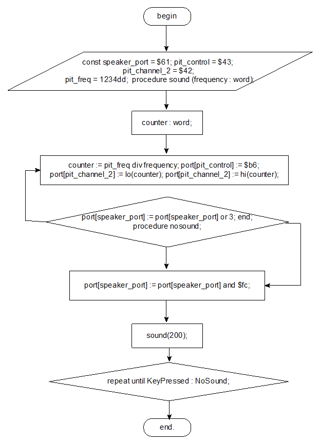 Действительно, при помощи TurboPascal достаточно не просто создать программу, которая бы демонстрировала работу с ПК, создать всё-таки основу и саму сущность формирования вывода звука для встроенного динамика, расположенного в системном блоке компьютера.