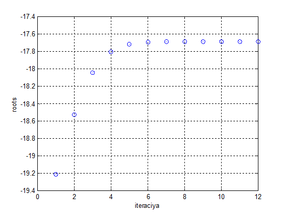 Рис.3. Динамика изменения корня в зависимости от итерации.