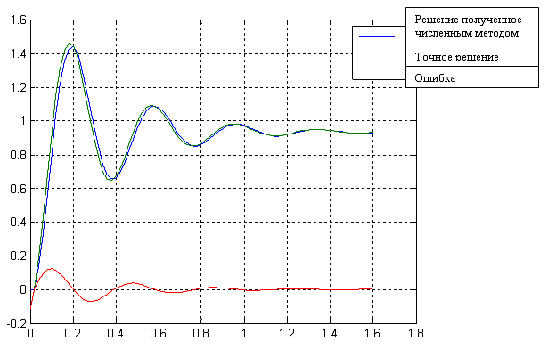 1.2 Построение переходного процесса численным методом. Для решения дифференциального уравнения используется многошаговый, неявный метод второго порядка, интерполяционная схема Адамса. В неявных методах используется информация о возможном будущем значении решения в точке п+1. Это несколько повышает точность получаемых результатов по сравнению с явными методами.