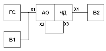 Для снятия характеристик частотного детектора необходимо собрать схему, представленную на рисунке 3.1.2. Соединить гнезда Х2 и Х3, к гнезду Х4 подсоединить вольтметр переменного тока В2.