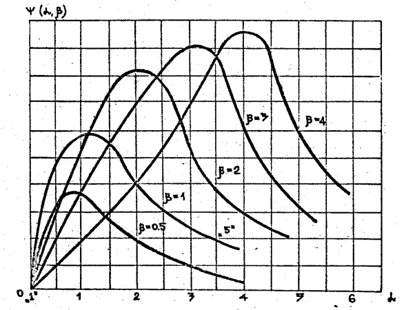 Характеристики частотного детектора рассчитываются с помощью обобщенных кривых Ψ(α , β), рисунок 3.1.4 - на обобщенной характеристике, соответствующей заданному β, выбрать 5-6 точек и найти их абсциссы и ординаты;