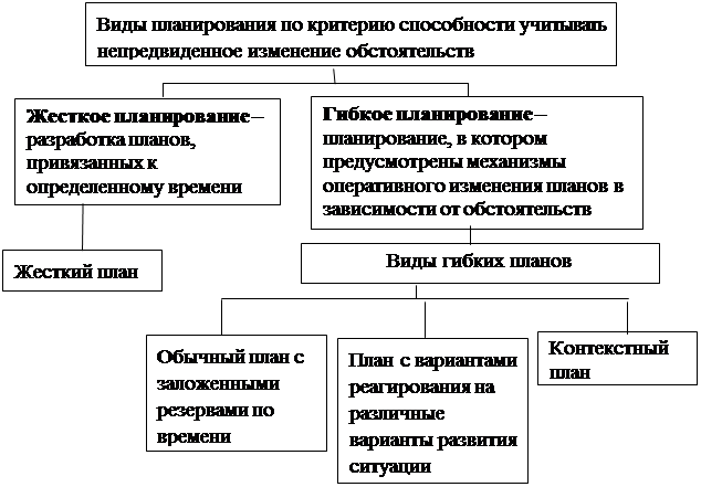 Рисунок 5. Виды планирования по критерию способности учитывать непредвиденное изменение обстоятельств П р и м е ч а н и е: Источник: [14, с. 42]. Так, гибкий план позволяет выявить неиспользованные резервы роста товарооборота в среднем на 3,9-4 % за год, во-вторых, гибкое планирование товарооборота позволяет повысить равномерность плановых заданий, то есть план может служить действенным ориентиром в работе предприятия питания [14, с. 48]. Кроме этого отклонение плановых показателей от фактических данных по товарообороту не превышает 4 % [15, с. 16]. 1.3.2. Порядок планирования товарооборота При планировании товарооборота организации общественного питания необходимо первоначально исходить из определения минимального объема товарооборота (критического), который обеспечит безубыточную работу организации. В данном случае при определении критического объема товарооборота рассчитывают точку безубыточности организации общественного питания (в экономической литературе данный процесс называется уровневым прогнозированием [16, с. 24]. Следует отметить, что в процессе осуществления хозяйственной деятельности организация общественного питания всегда несет определенные расходы: постоянные затраты, сумма которых неизменна в течение длительного времени и не зависит от величины товарооборота, и переменные затраты, находящиеся в зависимости от объемов производственно-торговой деятельности предприятия питания. При этом темп изменения совокупных затрат отклоняется от темпов изменения товарооборота. Объем товарооборота в его критической точке позволяет покрыть не только постоянные, но и переменные затраты, при этом прибыль организация питания в данном случае не получает. Следовательно, точка безубыточности показывает величину товарооборота, при котором прибыль организации равна нулю. Методика расчета точки безубыточности представлена в формуле (4)[ ]: Тб = И пост : (УВД – УИ пер ) * 100, (4) где И пост - сумма постоянных издержек; УВД – уровень валового дохода, %; УИ пер – уровень переменных издержек, %. При этом, сравнивая плановый показатель товарооборота с его критической величиной, можно судить о финансовой устойчивости организации питания. Кроме критической величины товарооборота ориентиром при планировании может служить расчет точки минимальной рентабельности, показывающей объем товарооборота, при котором существует возможность получения минимальной прибыли на вложенный капитал. Точка минимальной рентабельности рассчитывается по формуле (5) [4, с. ]: Т мин. р = ( И пост + П мин ) : (УВД – УИпер ) * 100, (5) где П мин – минимальная прибыль, определяемая величиной вложенного капитала. Следовательно, для обеспечения минимальной прибыли на вложенный капитал при определении плановых показателей товарооборота на будущий период величина расчетного товарооборота должна быть выше или равной точке минимальной рентабельности. В условиях нестабильности предприятие при определении плана товарооборота должно стремиться хотя бы к безубыточной работе, в основу планирования берется критическая величина товарооборота. Таким образом, благодаря уровневому прогнозированию определяется ожидаемый объем товарооборота и прибыли по трем точкам: максимальный, вероятный, минимальный. Данный метод позволяет подготовиться к возможным отрицательным последствиям, пр