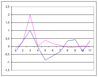 Погрешность измерительного преобразователя (по выходу) определяем, как отклонения значений выходного сигнала в каждой точке диапазона измерений от значений, рассчитанных по функции преобразования: