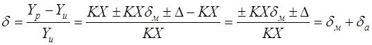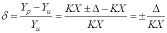Относительная погрешность прибора (преобразователя) по выходу в этом случае равна