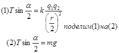 Решение: На шарик действуют силы: 1) Кулона; 2) натяжения нити; 3) тяжести. Система находится в равновесии => силы уравновешивают друг друга.