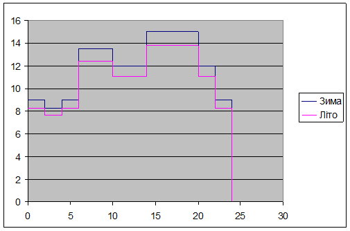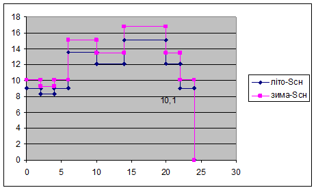 Рис. 1.1 Графік активного навантаження (зимовий та літній) для СН