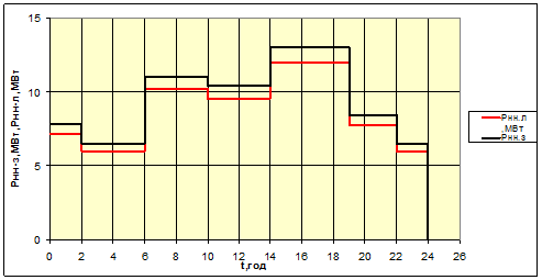 Рис. 1.2. Графік активного навантаження (зимовий та літній) для НН