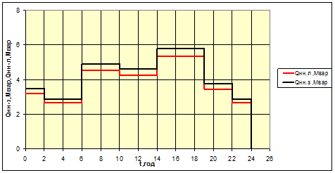 Рис. 1.4 Графік реактивного навантаження (зимовий та літній) для СН
