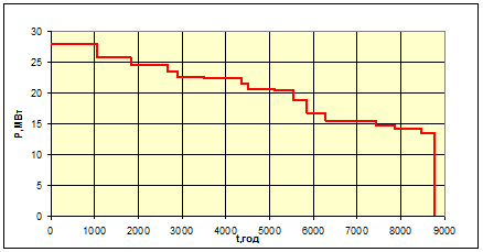 Побудуємо річний графік навантаження по продовженності. Враховуючи,що зима включає в себе 213 діб,а літо – 152,розрахуємо години для річного графіка.