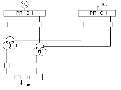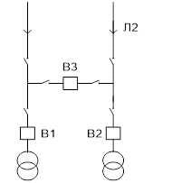 Рис 4.1. Структурна схема підстанції. 2. Вибір електричних схем РП підстанції. Для РП ВН вибираємо мостик з вимикачем в перемичці з відокремлювачами в колах трансформатора в сторону ліній: