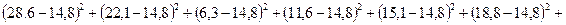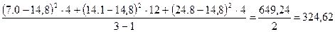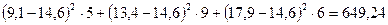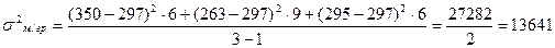 Wобщ = (329-297)2 +(328-297)2 +(352-297)2 +(355-297)2 +(222-297)2 +(239-297)2 +(277-297)2 +(214-297)2 +(205-297)2 +(262-297)2 +(265-297)2 +(276-297)2 +(347-297)2 +(218-297)2 +(357-297)2 +(438-297)2 +(229-297)2 +(477-297)2 +(340-297)2 +(221-297)2 +(279-297)2 = 113001