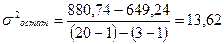 Сравнивая показатели по группам можно сделать вывод о том, что с увеличением затрат на 1 га посева зерновых их урожайность в среднем возрастает. Так, во второй группе предприятий средний уровень затрат на 1 га больше, чем в первой, на 3873 – 2138 = 1735 руб., или на 81,2%. При этом урожайность зерновых во второй группе выше на 14,1-7,0 = 7,1 ц/га или на 101,4%, т.е. увеличение затрат от первой ко второй группе на 100 руб. в расчете на каждый гектар посева приводит к среднему увеличению урожайности на 7,1/1735·100=0,4 ц/га. Рост уровня затрат в третьей группе по сравнению со второй на 83,4% приводит к росту урожайности на 75,9%, а на каждые 100 рублей увеличения затрат приходится (24,8-14,1)/(7104-3873)·100=0,3 ц увеличения урожайности. 3.2 Дисперсионный анализ Для оценки существенности различия между группами по величине какого-либо признака рекомендуется использовать критерий Фишера (F-критерий), фактическое значение которого определяется по формуле: