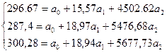 Поскольку Fфакт < Fтабл (2,9<3,55), то можно признать различие между группами не существенными; урожайность зерновых не существенно влияет на себестоимость 1 ц зерна. Величина эмпирического коэффициента детерминации, равная 3.3. Корреляционно-регрессионный анализ Корреляционно – регрессионный анализ – это метод математической статистики, используемый для изучения корреляционной связи между признаками явлений. Рассмотрим взаимосвязь между урожайностью (x1 ), уровнем затрат на 1 га посева зерновых (x2 ) и себестоимостью производства 1 ц зерна (Y). Будем использовать следующее уравнение: Y=a0 +a1 x1 +a2 x2 Параметры a0 , a1 , a2 определим в результате решения системы трех нормальных уравнений: