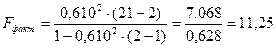 ) связь прямая слабая. При этом имеет место мультиколлинеарность, т. к. между факторами существует более тесная связь ( Между всеми признаками связь тесная, т.к. R=0,610. Коэффициент множественной детерминации Д=0,6102 *100=37,2% вариации себестоимости производства 1ц зерна определяется влиянием факторов, включенных в модель. Для оценки значимости полученного коэффициента R воспользуемся критерием Фишера, фактическое значение которого определяется по формуле: