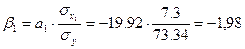 Таким образом, изменение на 1% урожайности ведет к среднему снижению себестоимости на 1,04%, а изменение на 1% уровня затрат - к среднему ее росту на 0,91%. При помощи β - коэффициентов даётся оценка различия в степени варьирования вошедших в уравнение факторов. Они показывают, на какую часть своего среднего квадратического отклонения (