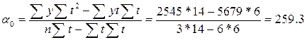 а1 = 294,5 Значение параметров подставим в уравнение прямой линии: