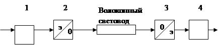 1 Модулятор 3 Приемник э - электрический 2 Передатчик 4 Демодулятор 0 – оптический Рис. 1.1 Схема волоконно-оптической системы передачи К активным элементам ВОЛС относятся источники излучения (ИИ) и фотоприемники (ФП). В качестве ИИ для ВОСП используются светоизлучающие диоды (СИД) и полупроводниковые лазеры (ПЛ). Фотоприемники предназначены для преобразования оптического сигнала в электрический, который затем усиливается и обрабатывается в электронных устройствах. Оптический передатчик (рис. 1.2) [4] предназначен для обеспечения постоянного уровня мощности (ЛД) с учетом всех дестабилизирующих факторов.
