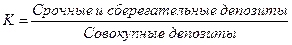 Кв – кредитные вложения Пс – привлеченные средства банка и депозиты Или обратное отношение – коэффициент использования депозитов: