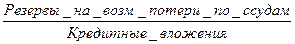 Данный показатель характеризует полноту привлеченных средств. Оптимальное значение больше 1. 4. Коэффициент обеспечения кредитных вложений резервами на возможные потери по ссудам Кобесп.