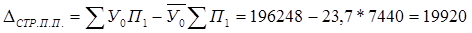 Абсолютное изменение валового сбора за счёт изменения посевных площадей, ц: