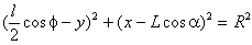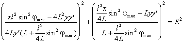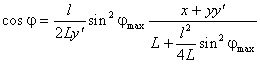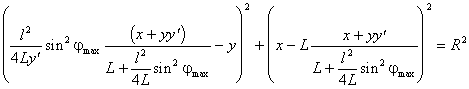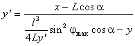 l - расстояние между осями направляющих кулисного механизма; R - радиус кулачка; H - радиус качания кулисы (перпендикуляр от центра оси качания кулисы к отрезку, соединяющему центры направляющих); L - радиус вращения кулачка (между центром кулачка и центром оси вращения кулачка). Ось x направлена вдоль центральной оси направляющей, ось y - перпендикулярно к оси x . Начало координат - середина направляющей, самое ?узкое¦ место. Координата y определяет радиус сечения направляющей в точке с координатой x . Продифференцируем (2.1) по x :