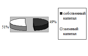 Рис. 7 Структура собственного и заемного капитала предприятияза 2005 г., %