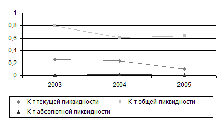 или 97,4 % и в 2006 г. – 885807 тыс. руб., или 99,2%. Эти цифры говорят о том, что только 1 % срочных обязательств предприятия на конец периода покрывались наиболее ликвидными активами. Понижение суммы быстрореализуемых активов над краткосрочными обязательствами указывает на то, что краткосрочные пассивы как в 2005 г. так и в 2006 г. не могут быть погашены средствами в расчетах. Ожидаемые поступления от дебиторов в 2005 – 2006 гг. меньше краткосрочных кредитов банков и заемных средств на 232529 тыс.руб и 370927 тыс.руб. или в 1,9 и 4,1 соответственно. Выполнение обязательств перед кредиторами полностью зависит от своевременного проведения расчетов с дебиторами. Недостаток средств по первой и второй группам в 2005 – 2006 гг. активов показывает, что в анализируемом периоде предприятие не обладало текущей ликвидностью и платежеспособностью. Медленно реализуемые активы (запасы и затраты) превышали долгосрочные пассивы. Выполнение третьего неравенства говорит о том, что предприятие имеет перспективную ликвидность. Четвертое неравенство за 2004 – 2006 гг. не соблюдается, значит предприятие не обладает собственными оборотными средствами. Исходя из этого, можно охарактеризовать ликвидность баланса как недостаточную. Сопоставление первых двух неравенств свидетельствует о том, что в ближайший к рассматриваемому моменту промежуток времени организации не удастся поправить свою платежеспособность. Причем, за анализируемый период возрос платежный недостаток наиболее ликвидных активов для покрытия наиболее срочных обязательств. При этом, исходя из данных аналитического баланса, можно заключить, что причиной снижения ликвидности явилось то, что краткосрочная задолженность увеличилась более высокими темпами, чем денежные средства. Проводимый по изложенной схеме анализ ликвидности балансе является приближенным. Более детальным является анализ платежеспособности при помощи финансовых коэффициентов. Для оценки текущей платежеспособности используются относительные коэффициенты ликвидности, посредством которых определяется степень и качество покрытия краткосрочных долговых обязательств ликвидными активами. Иначе говоря, предприятие считается ликвидным, когда оно в состоянии выполнить свои краткосрочные обязательства, реализуя текущие активы. Основным критерием для классификации активов и пассивов как текущих является условие их потребления или оплаты в течение нормального производственно-коммерческого цикла предприятия. Под производственно-коммерческим циклом понимается средний промежуток времени между моментом приобретения материальных ценностей и моментом реализации готовой продукции покупателям и ее оплаты. Нормативные, финансовые коэффициенты, характеризующие платежеспособность предприятия и способы их расчета указаны в таблице 7. Таблица 7 Нормативные финансовые коэффициенты, характеризующие платежеспособность предприятия