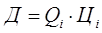 С помощью индексного метода проанализируем влияние на отклонение от плановых показателей стоимости основных видов товарной продукции, изменение объёмов производства и цен на неё. Стоимость вида продукции можно представить в виде произведения: