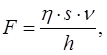 де F – сила рідинного тертя, Н; h – динамічна в’язкість, Нс/м2 . s – площа стискання тертьових поверхонь, м2 ; v – відносна швидкість переміщування поверхонь, м/с; h – товщина шару масла, м. На підставі експериментального вивчення режимів роботи підшипників ковзання професором М.П. Петровим була створена гідродинамічна теорія тертя і запропонована наступна формула для визначення коефіцієнта рідинного тертя: