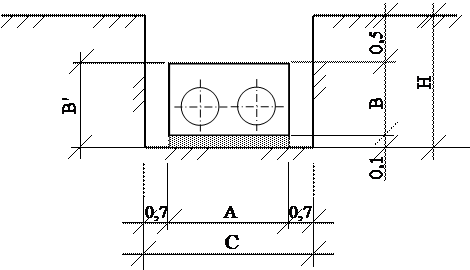 Объем траншеи: Принимаем траншею без откосов. Ширина траншеи: Глубина заложения: