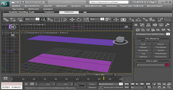 Рис. 5 3D отображение перпендикулярных плоскостей. Заключение ИКТ создает большие возможности в формировании персонального когнитивного стиля. В частности, посредством различных мультимедийных средств (2D и 3D графика, звук, гипертекстовая форма) становится возможной разработка учебных текстов с учетом различных стилей кодирования информации: предметно-практического, визуального, словесно-речевого, сенсорно-эмоционального, что, в конечном счете, способствует индивидуализации процесса обучения. Говоря о практическом использования ИКТ в школе и вузе, обращает на себя внимание тот факт, что на сегодняшний день этот вопрос недостаточно исследован. Опрос, проведенный среди преподавателей математических дисциплин вузов Орла, Курска, Брянска, Железногорска, Тулы показал, что лишь 41,9% из них используют компьютерные средства в преподавании, а среди учителей Екатеринбурга и Омска эта доля составляет 23,7%. Как видим, исследование проводилось только по одному из двух направлений (т.е. либо в школе, либо в вузе). Хотелось бы отметить и тот факт, что в большинстве публикаций по вопросу использования ИКТ акцент ставится на отсутствие методического обеспечения существующих компьютерных средств. По-нашему мнению, следует обратить внимание как на количество, так и на качество уже имеющихся. Например, часто электронный учебник является просто копией «бумажного» варианта и содержит грубые ошибки в изображениях геометрических фигур. Применение 3d технологий позволяет наглядно показать такие сложные элементы как преобразование одной фигуры в другую, и сечение одной или несколькими плоскостями что может быть наглядным примером для учащихся школ и вузов. Модели фигур в трехмерном пространстве можно предоставлять как в программном виде(в какой либо программе) так и посредствам видеороликов. Преимущество видео в том, что его можно демонстрировать не только на компьютере но и по средствам простого видеопроигрывателе, а так же записать на аналоговые носители. Именно по этому я решил разработать свой проект так , чтобы его можно было представить в видео файлах. В курсовой работе я постарался реализовать поставленные задачи, для этого: · Было изучено содержание рассматриваемой темы, описанной в источниках различных авторов · Обоснованно выбран программный продукт, с помощью которого и были созданы видеоролики. Литература 1. Адамар, Ж. Элементарная геометрия. Часть вторая. Стереометрия. [Текст] / Ж. Адамар. - М.: Учпедгиз, 1948 2. Ильин, В. А. Аналитическая геометрия. [Текст] / В. А. Ильин, Э. Г. Позняк. - М.: Наука. Физматлит, 2003 3. Романычева, Э. Т. Инженерная и компьютерная графика [Текст] / Э. Т. Романычева, Т. Ю. Соколова, Г. Ф. Шандурина. – М.: ДМК Пресс, 2001 4. Большой энциклопедический словарь. Математика. [Текст] / - М.: Большая Российская энциклопедия, 1998 5. Ким Ли 3DStudioMAXдля дизайнера. Искусство трехмерной анимации [Текст] / Ким Ли. – М.: ДиаСофт, 2003 6. Ильиных, Д. В. Дидактическая компьютерная игра в процессе изучения правильных многогранников [Текст] / Д. В. Ильиных, Р. Ф. Мамалыга – Челябинск, ЧГПУ, 2006 7. Мамалыга, Р. Ф. Один из аспектов развития пространственного мышления [Текст] / Р. Ф. Мамалыга – Пермь, ПГПУ, 2004. 8. Материалы XIV Международной конференции «Математика. Компьютер. Образование». – Пущино, 2007 9. Компьютерная графика [Электронный ресурс]: Режим доступа: http://www.codenet.ru св